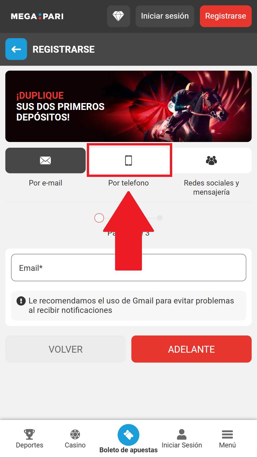 Completá los datos básicos: email, contraseña y número de teléfono.