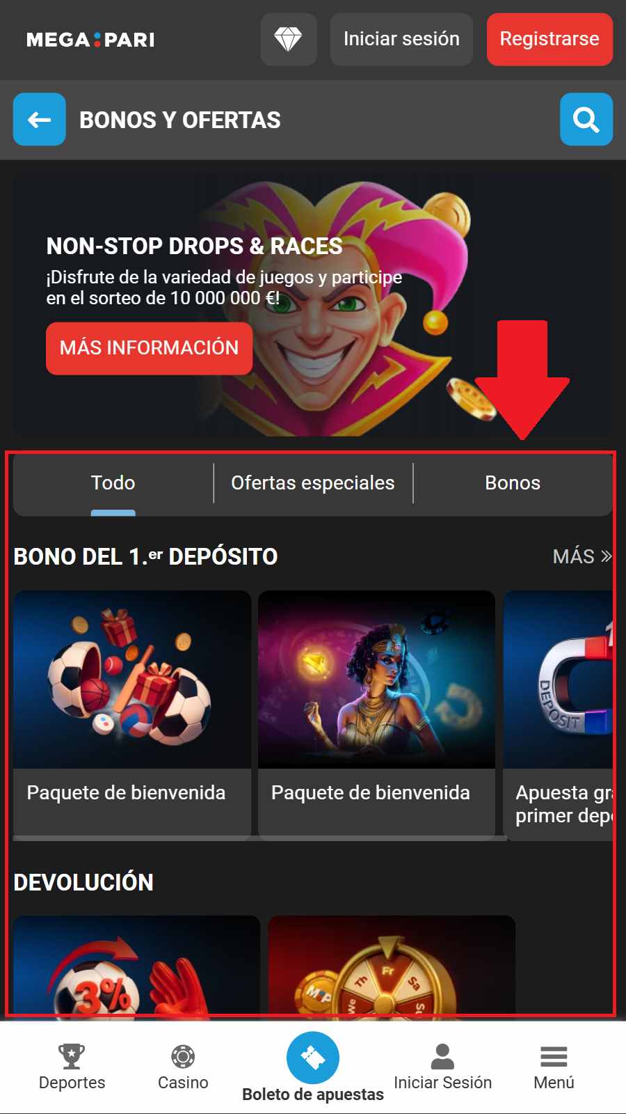 Actualmente este casino no cuenta con bonos sin depósito pero te recomendamos mantenerte atento a la sección de promociones de Megapari Argentina para tener acceso a las ofertas actualizadas.