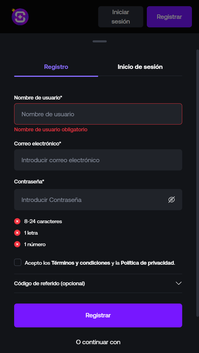 El proceso de registro inicial en Shuffle es engañosamente simple y rápido, diseñado para una baja fricción. Literalmente, podés estar adentro en menos de un minuto.